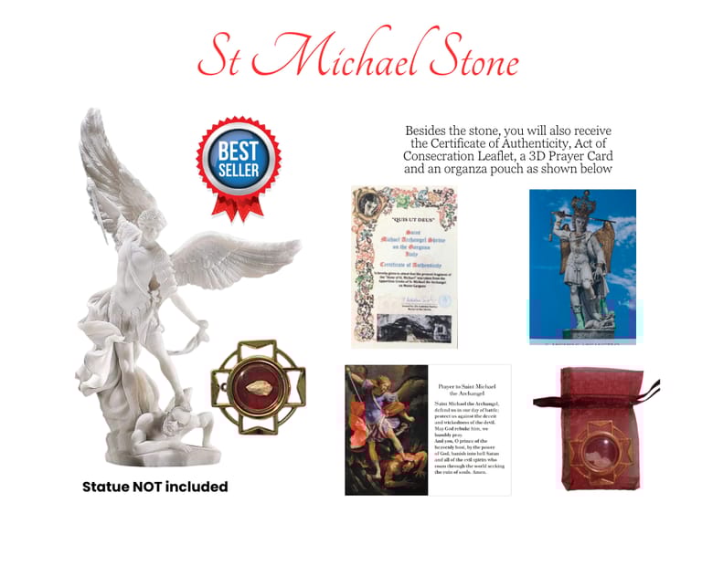 Besides the St Michael stone, you will receive a Certificate of Authenticity, a Consecration card, a 3D St Michael Prayer card and an organza pouch.
